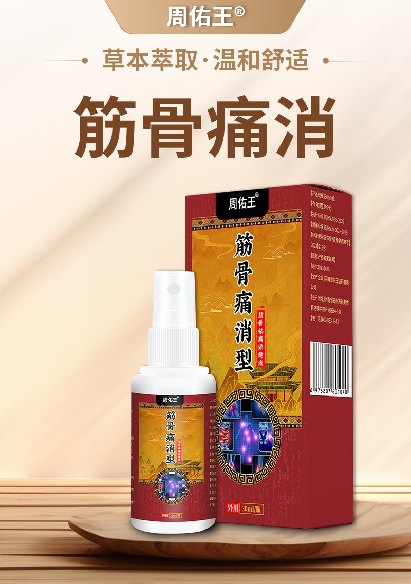>周佑王筋骨痛消型保健液身体护理膝盖关节疼痛跌打扭伤外用透骨液