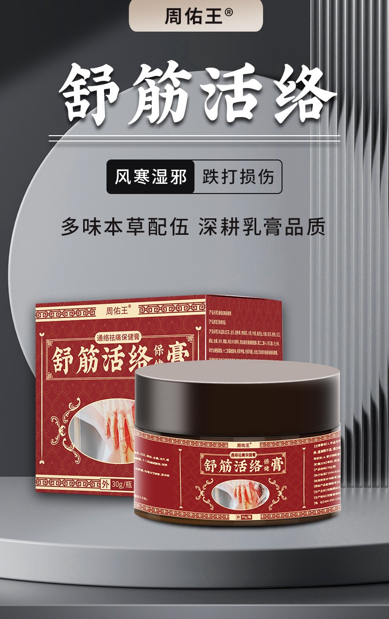 周佑王舒筋活络保健膏肩周颈椎疼痛跌打扭伤筋骨关节膏透骨膏批发